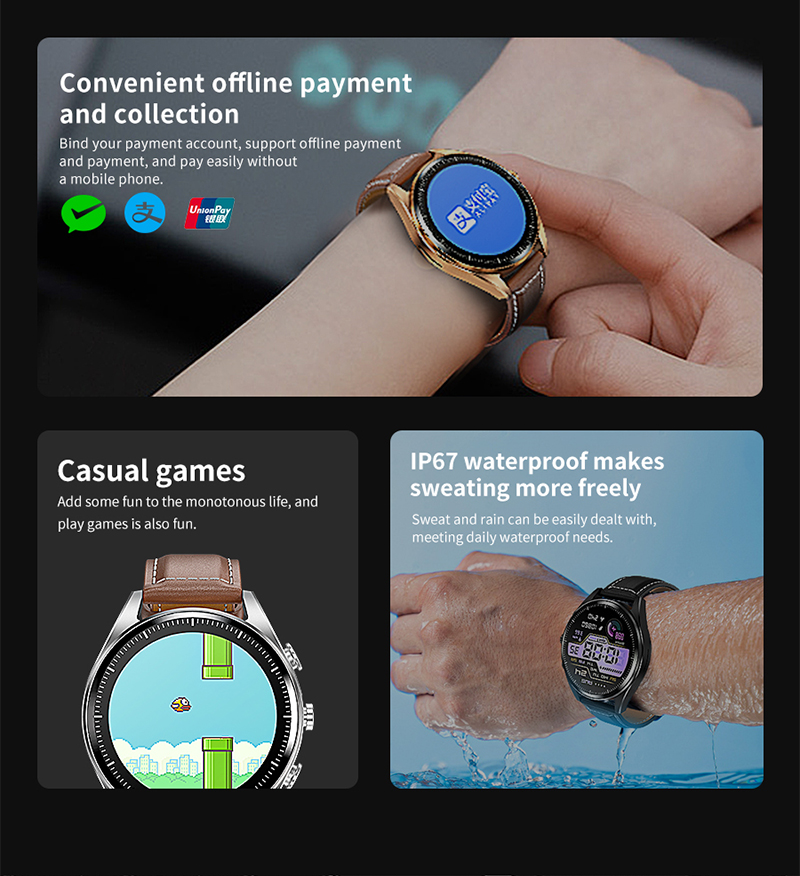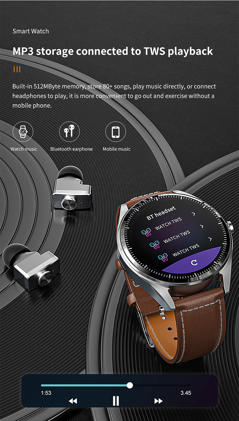 The Canfit AI Smartwatch combines a stylish design with powerful features. Equipped with a 1.39-inch 360*360 HD display, it supports MP3 local music, AVI video playback, and seamless connection with TWS earbuds. With 512MB storage, Bluetooth calling, AI voice assistant, NFC payment, and multiple sports modes, it fits both lifestyle and fitness needs. Health tracking includes heart rate, sleep, calories, and step monitoring. IP67 waterproof design ensures durability.