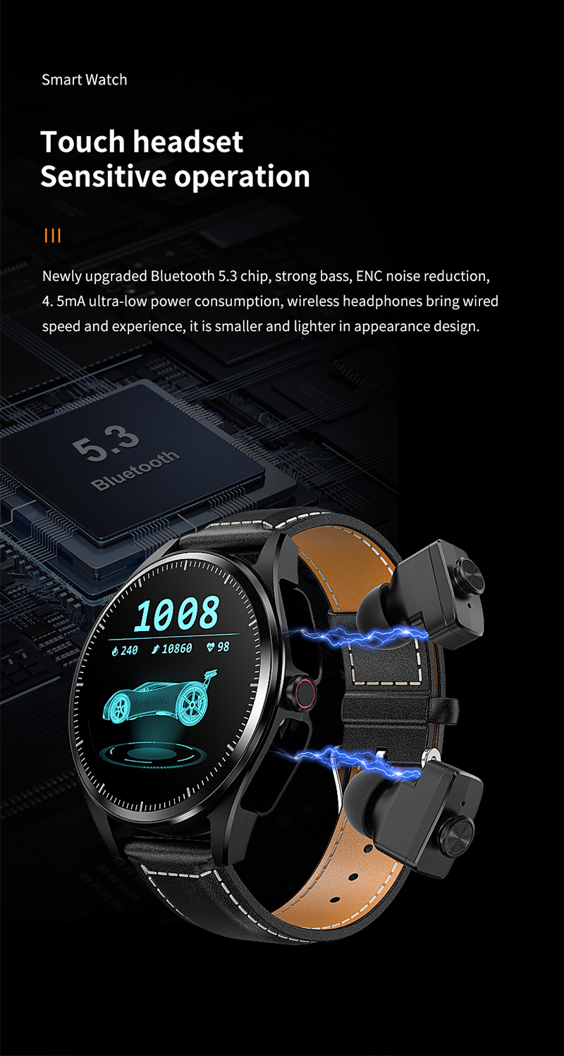 2-in-1 AI Smartwatch with TWS Earbuds, 1.39" HD Touch Screen, MP3 Music, Video Playback, Heart Rate & Sleep Monitor, NFC Payment, IP67 Waterproof Fitness Watch, RC-SW009