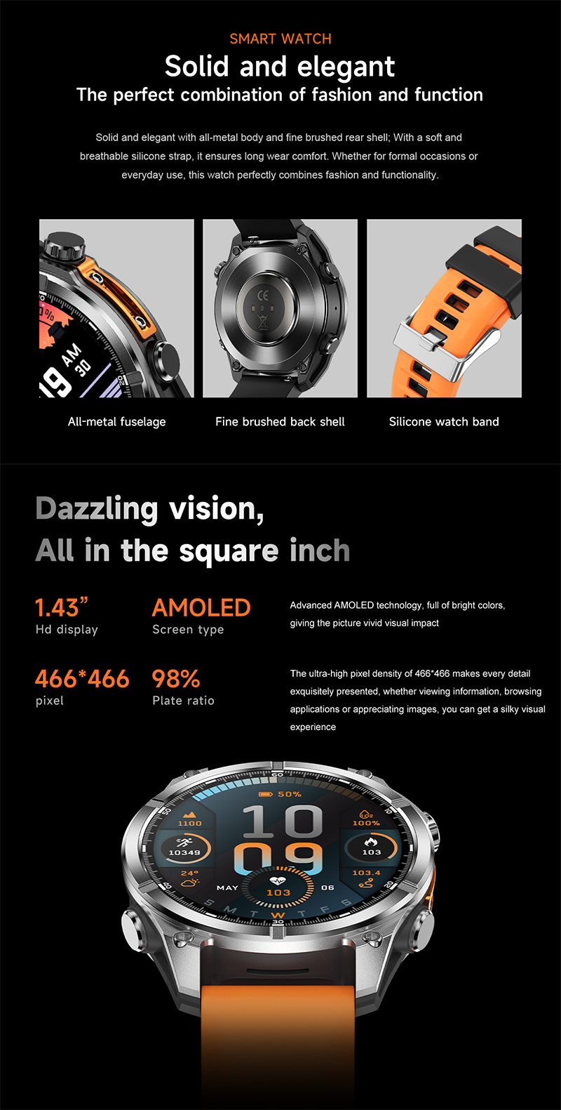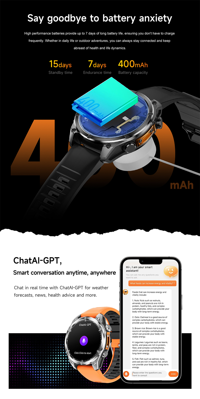 AI Smart watch with AMOLED Display, GPS, ChatGPT, Bluetooth 5.4, Waterproof 3ATM, Fitness & Health Tracker RC-SW001