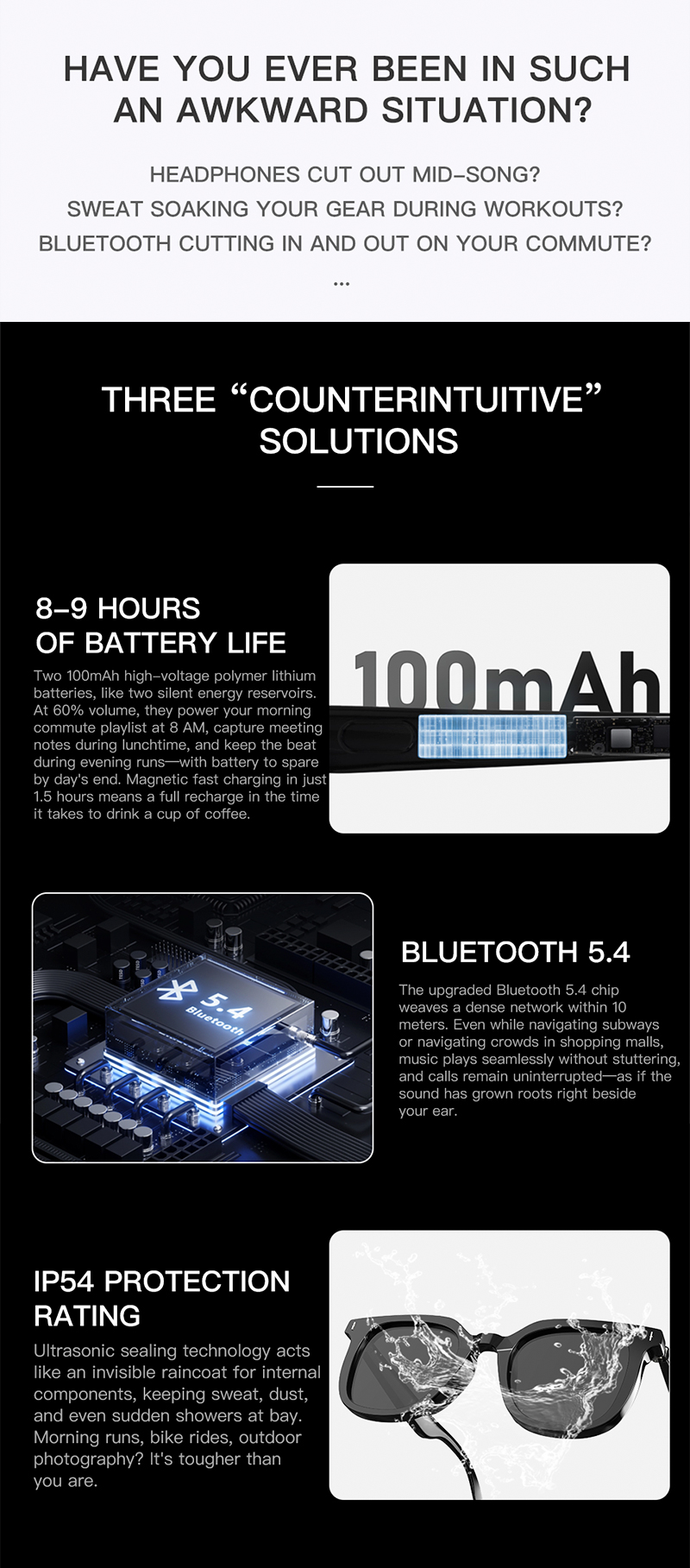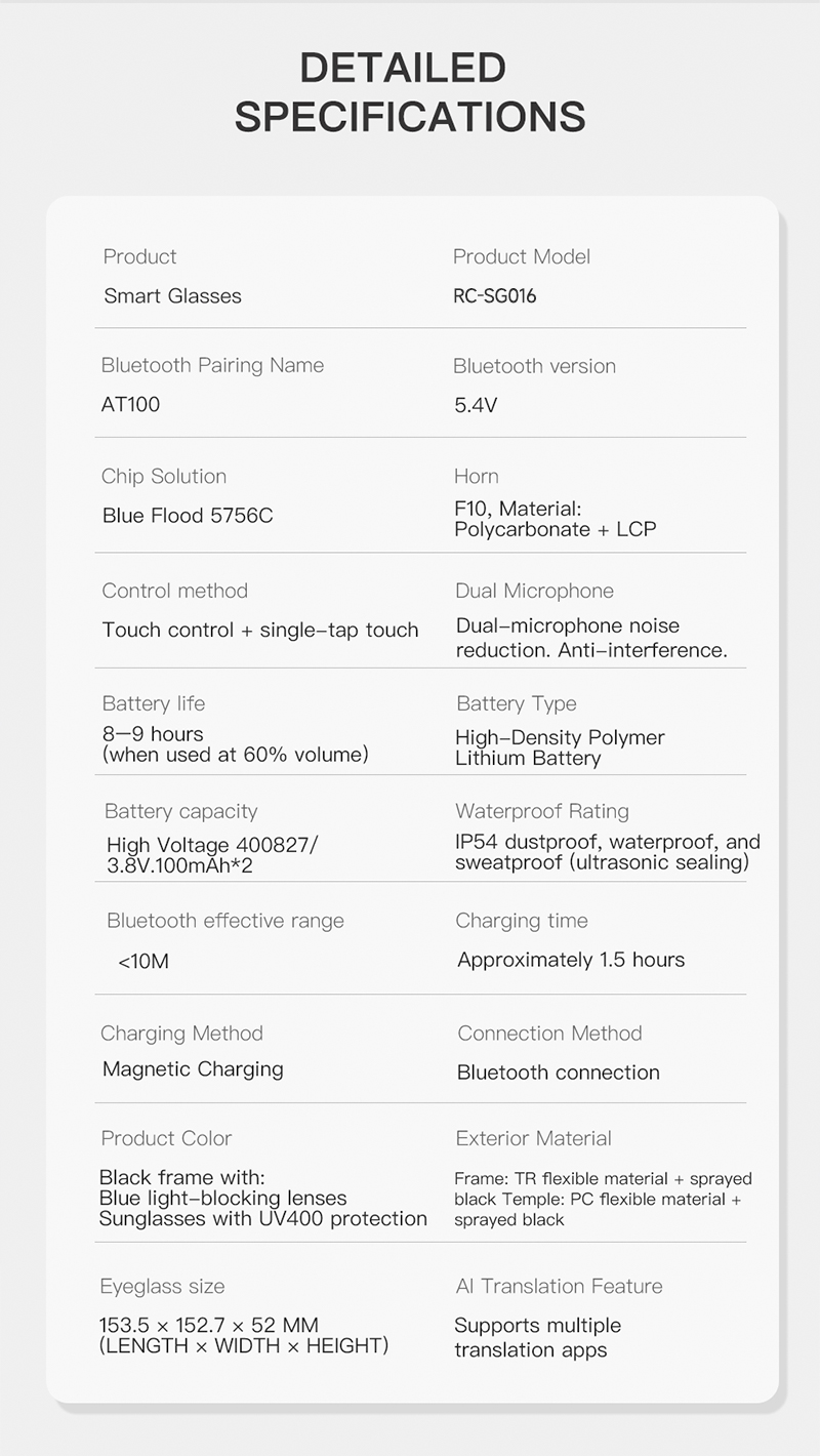 Waterproof Rating: IP54 Dustproof / Waterproof / Sweatproof