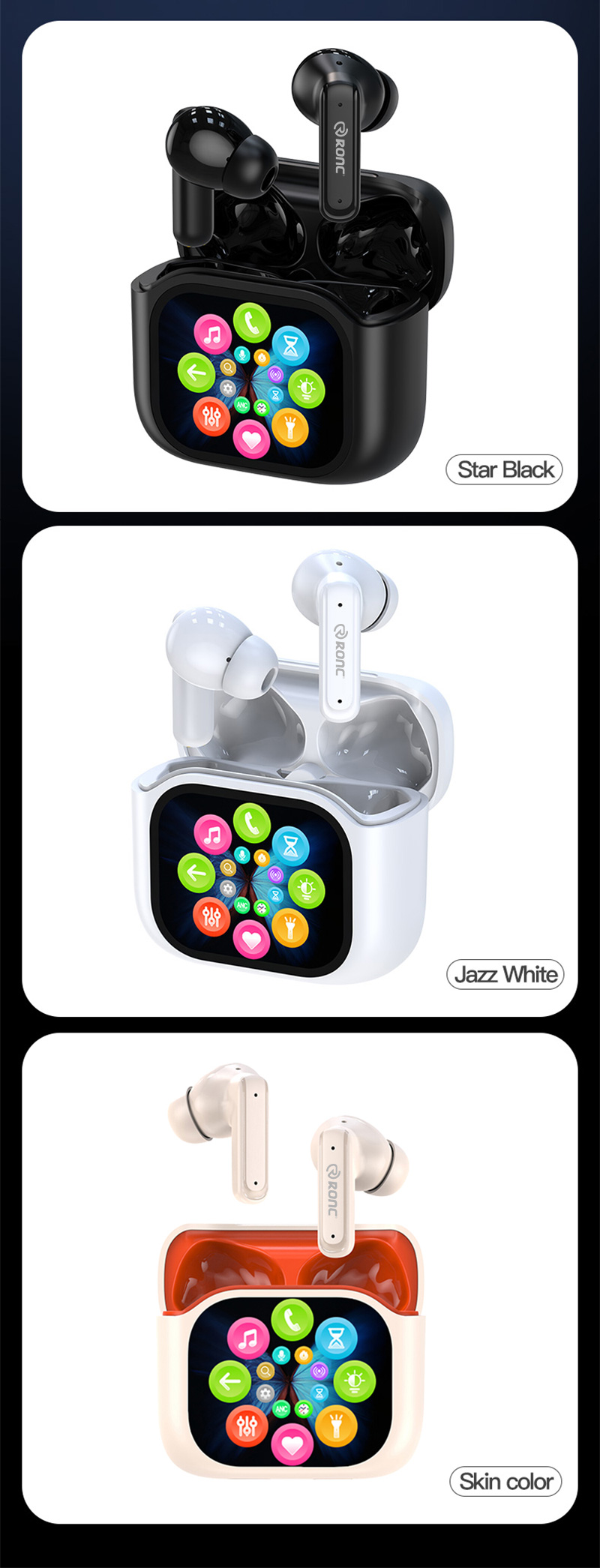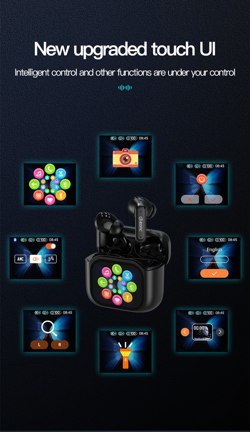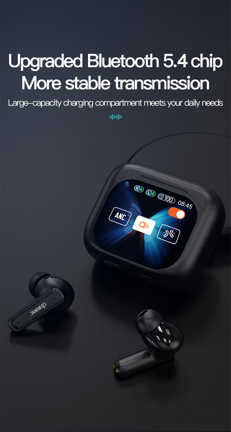 Experience next-generation audio with the RC-AE02 Smart AI Earbuds. Featuring dual-microphone Active Noise Cancellation (ANC) and the advanced Zhongke Lanxun Bluetooth 5.4 chipset, these in-ear headphones deliver crystal-clear calls and deep bass with a 10mm copper ring speaker. A 2.01" smart display shows real-time connection and battery levels. Enjoy 7 hours of playtime, IPX5 waterproof rating, AI voice translation, auto pairing, touch control, and fast Type-C charging.
