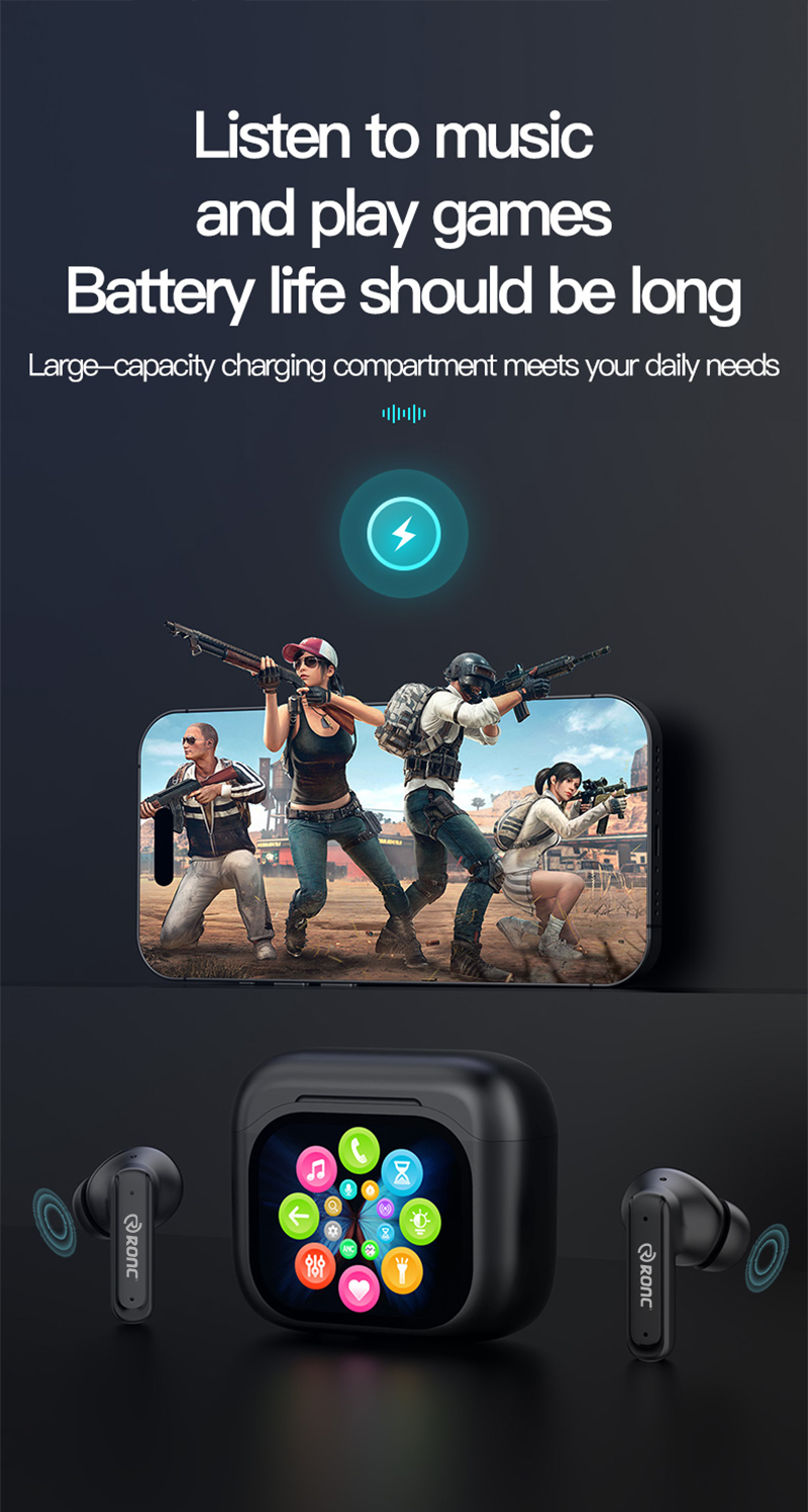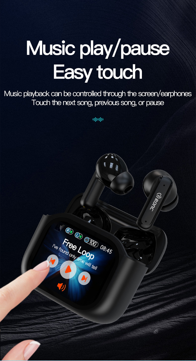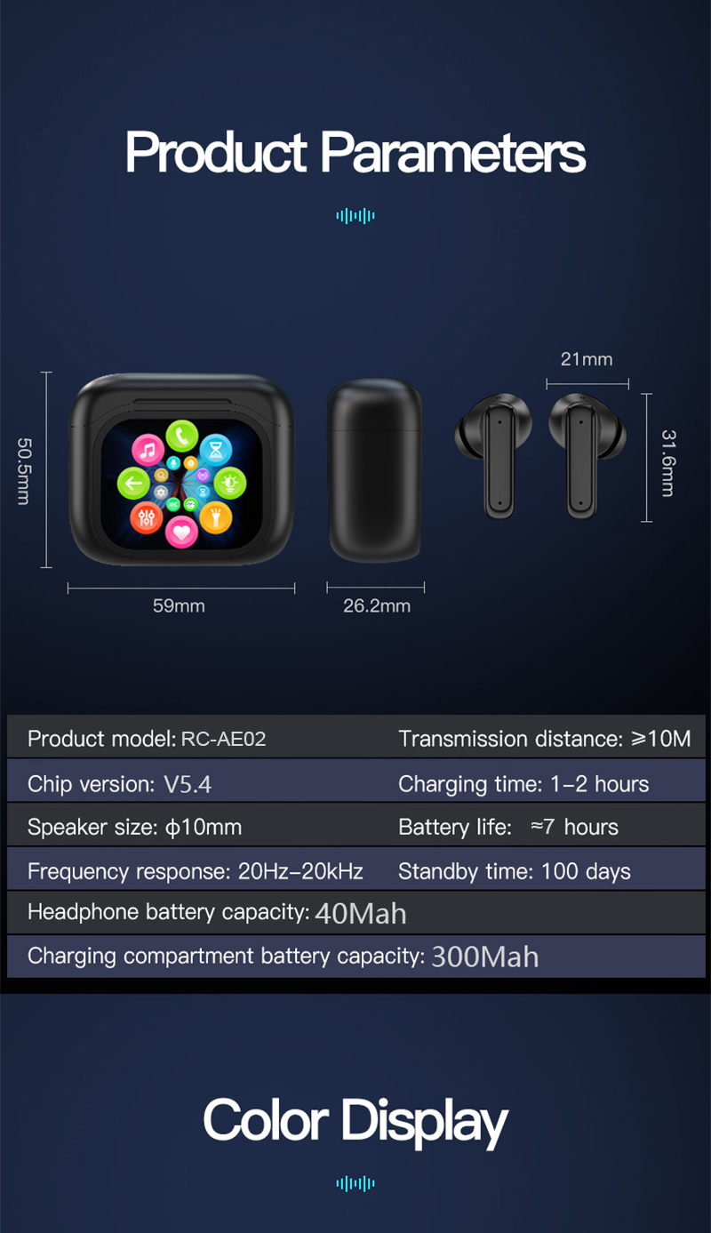 Experience next-generation audio with the RC-AE02 Smart AI Earbuds. Featuring dual-microphone Active Noise Cancellation (ANC) and the advanced Zhongke Lanxun Bluetooth 5.4 chipset, these in-ear headphones deliver crystal-clear calls and deep bass with a 10mm copper ring speaker. A 2.01" smart display shows real-time connection and battery levels. Enjoy 7 hours of playtime, IPX5 waterproof rating, AI voice translation, auto pairing, touch control, and fast Type-C charging.