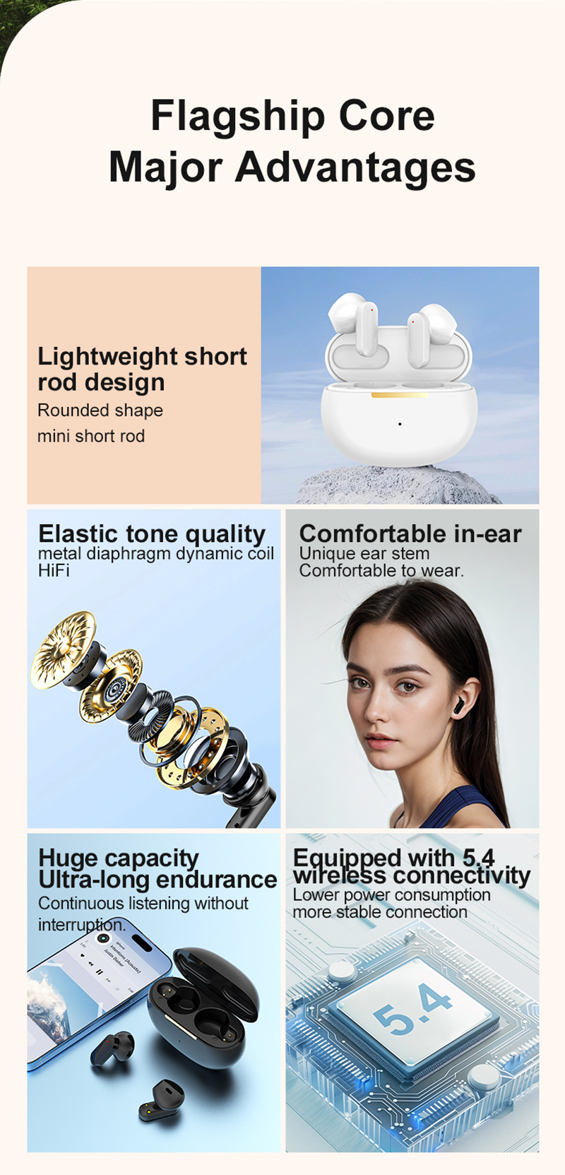 Experience next-level sound with these Smart AI Translation Wireless Earbuds, featuring a Ø13mm composite diaphragm for powerful bass, elastic tone quality, and immersive panoramic audio. The dual-mic ENC system ensures crystal-clear calls, while Bluetooth 5.4 delivers ultra-low-latency performance for gaming and streaming. Enjoy up to 120 days of standby time, real-time AI translation, smart APP control, and a lightweight, comfortable fit designed for all-day wear.