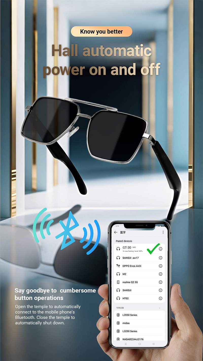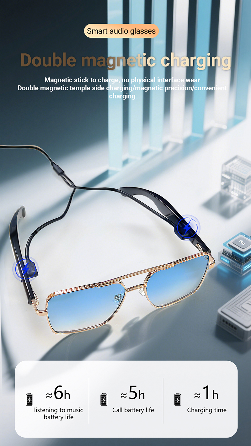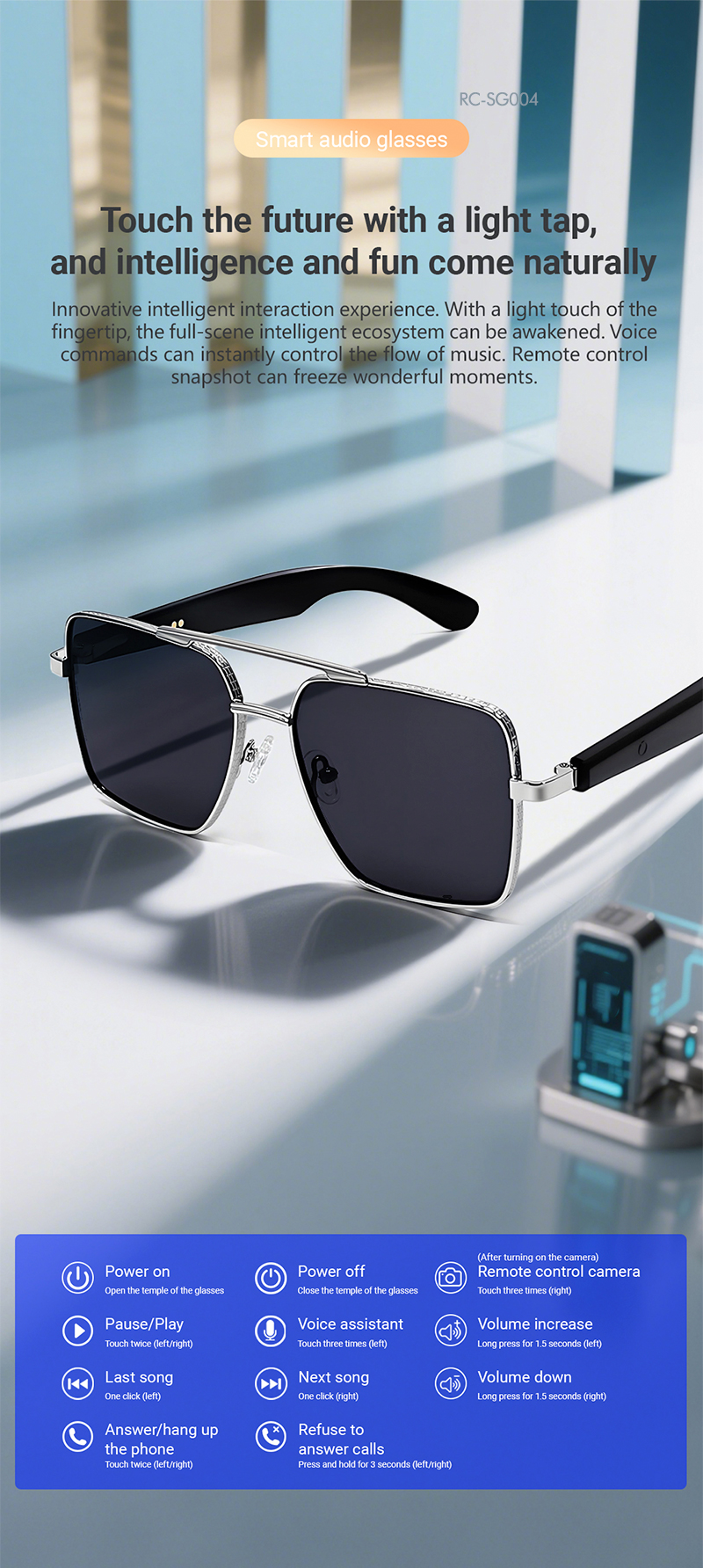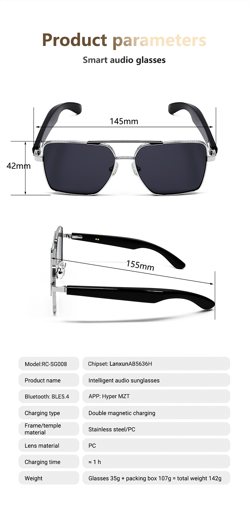 Smart AI Translator Bluetooth Sunglasses with Music Playback, Hands-Free Calling, UV400 Protection, Touch Control & Magnetic Charging, RC-SG008